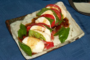 Insalata CapreseThis simple appetizer of fresh buffalo mozzarella, fresh tomatoes, and fresh basil is drizzled with a quickly-prepared dressing of olive oil and balsamic vinegar. Share a plate for a pleasantly mild antipasti. |